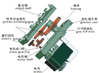 根據每檔齒輪受力大小,計算出齒輪的模數、厚度和材料,并經過壽命測試,這樣才能做出更低噪音并足夠壽命的有機結合。電機有直流電機、無刷直流電機、罩極電機等可組合。